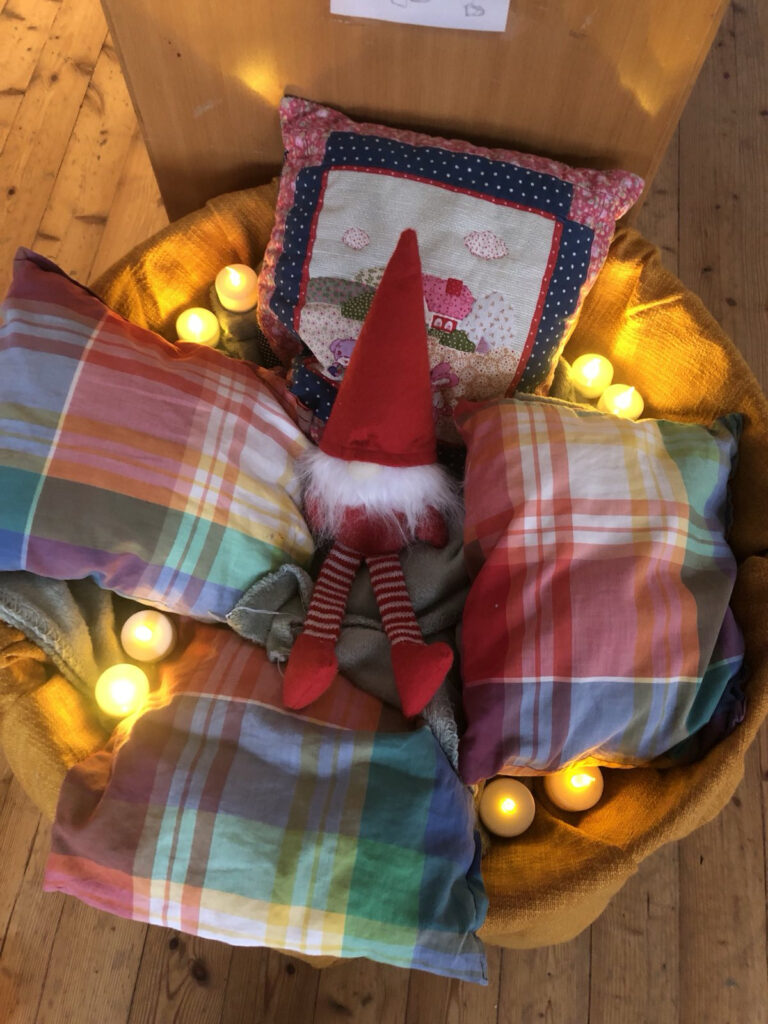 Die müden oder jüngeren Kinder halten ein Mittagsschläfchen, während die anderen in Ruhe Bücher lesen und Geschichten hören…